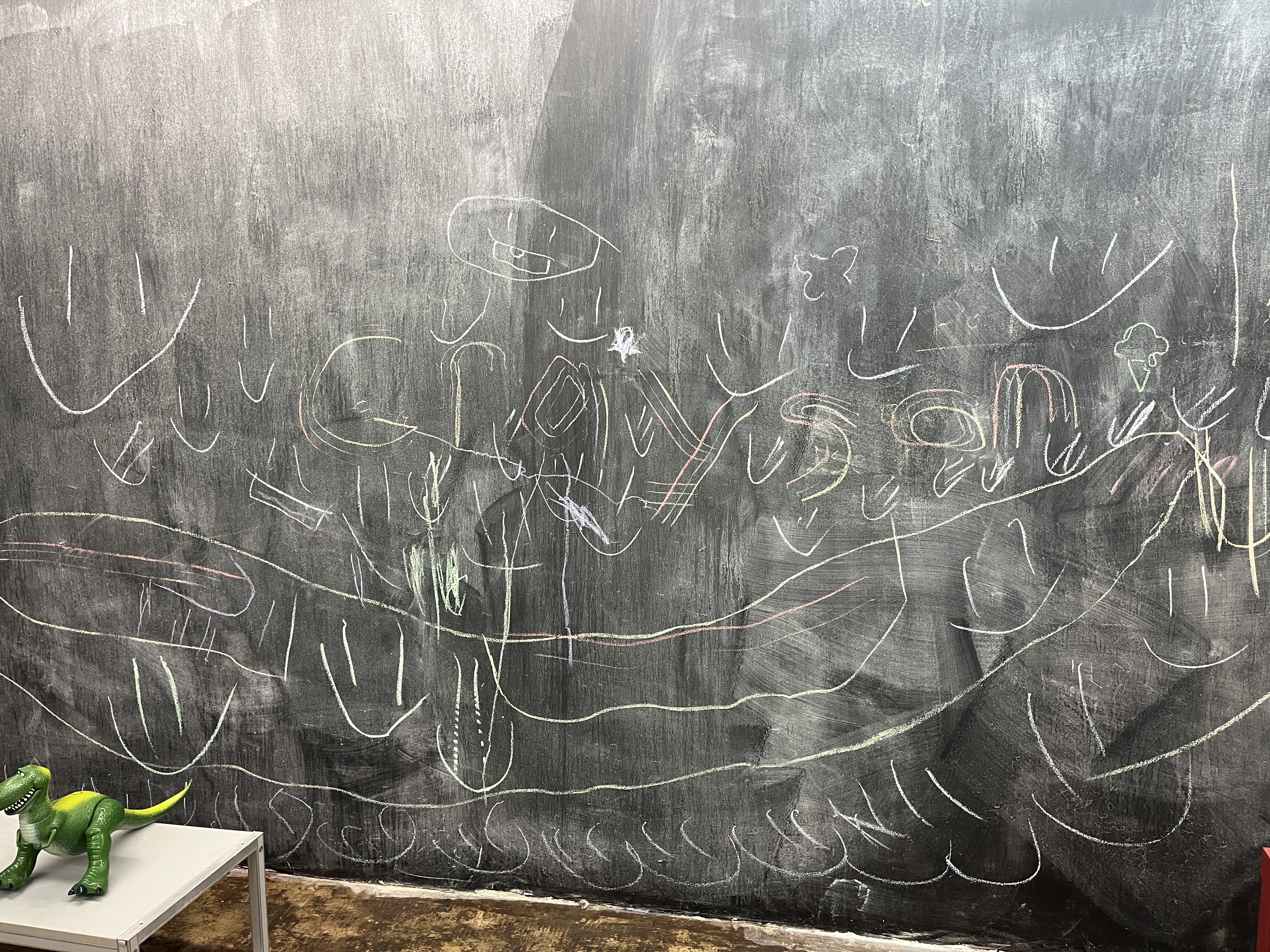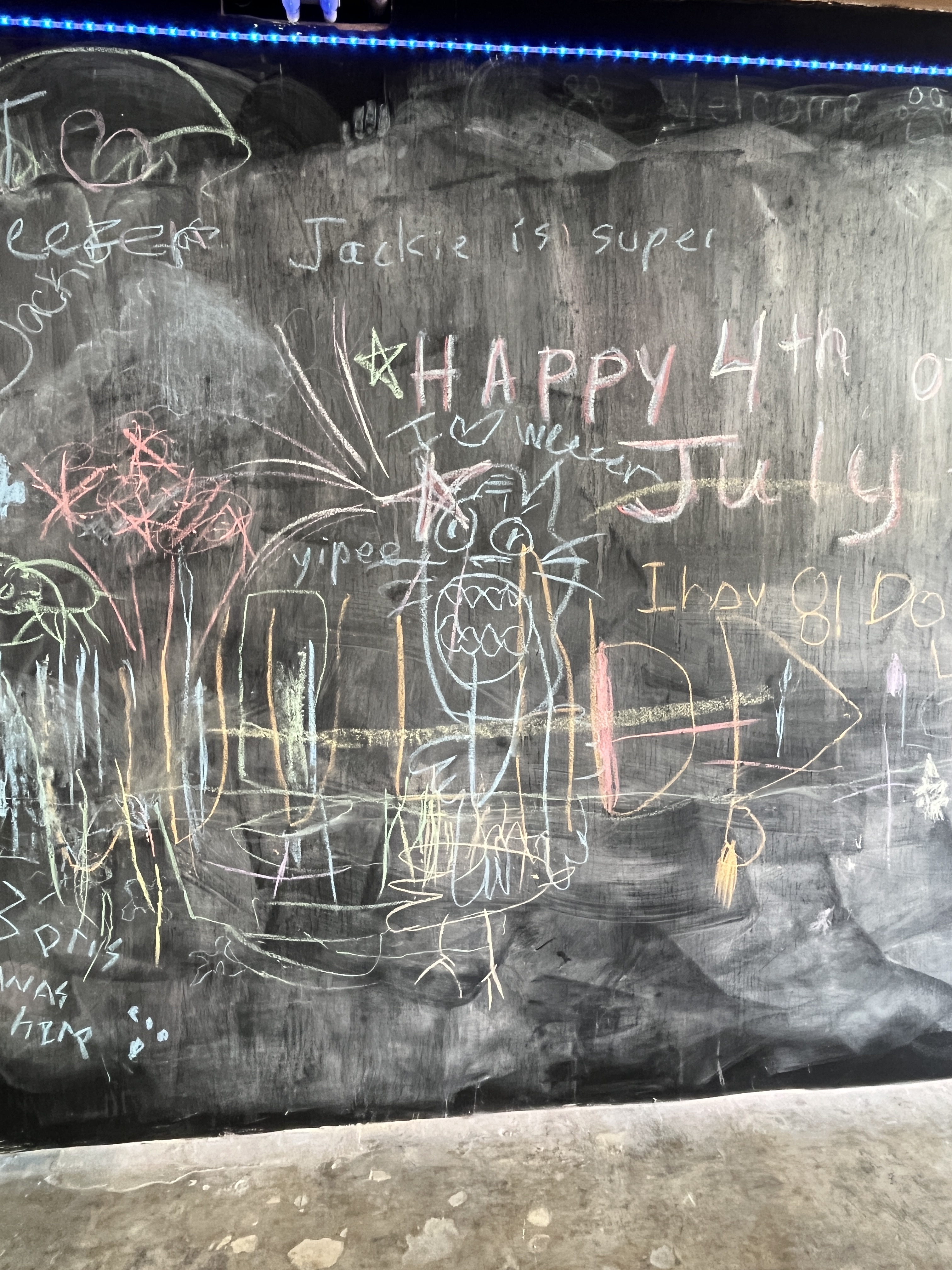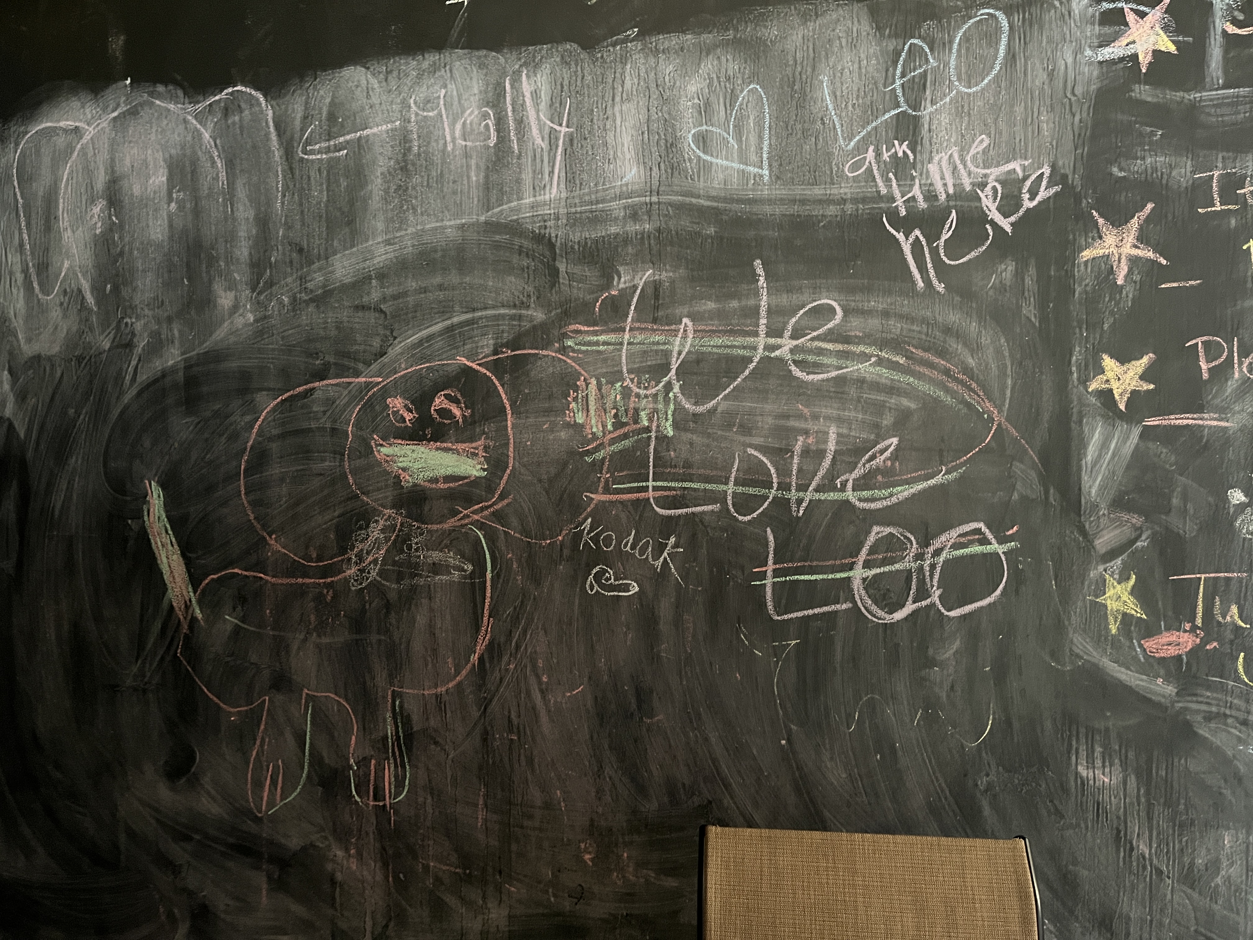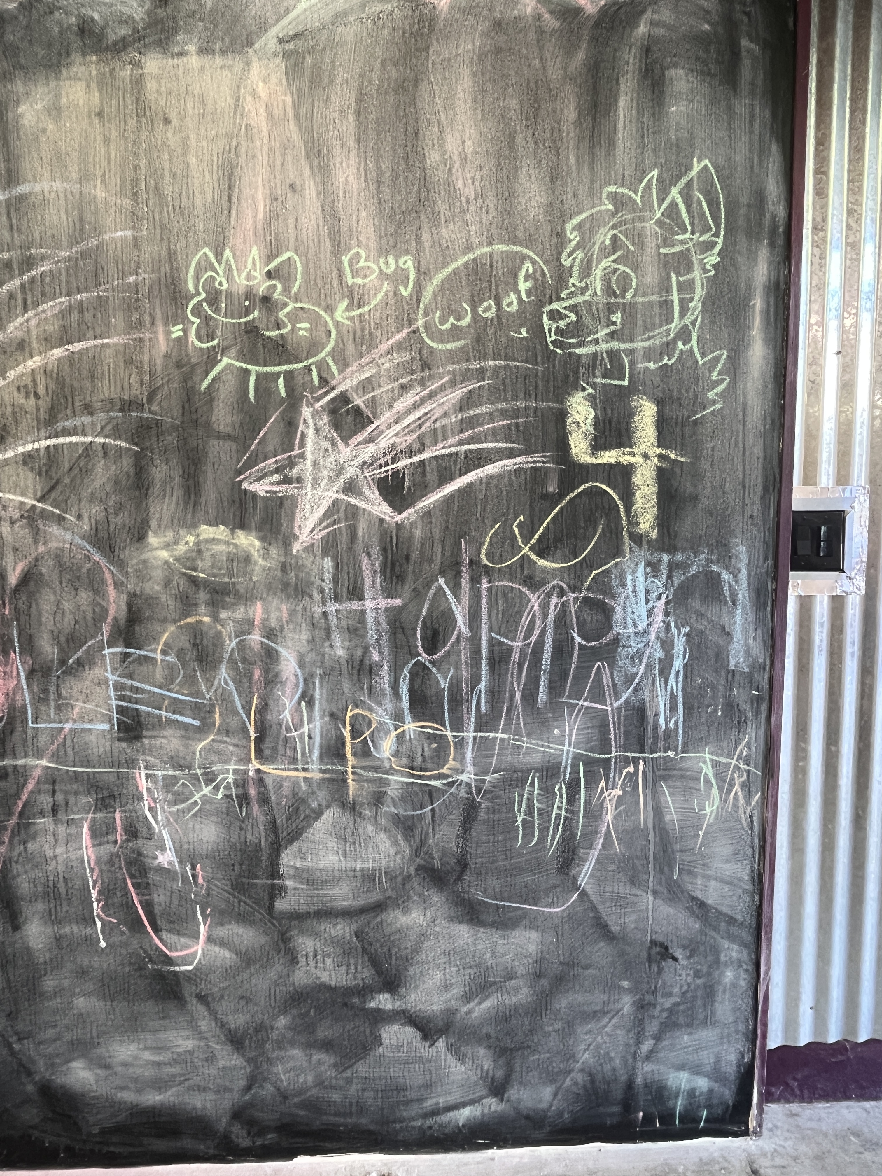I added a blackboard to the self wash because I had a very ugly wall that I couldn’t figure out what to do with. I pictured parents washing dogs and a place to distract kids. I pictured love messages too. It’s been so much fun coming in and seeing all the wonderful messages of love and peace. I take a photo before I wash the board